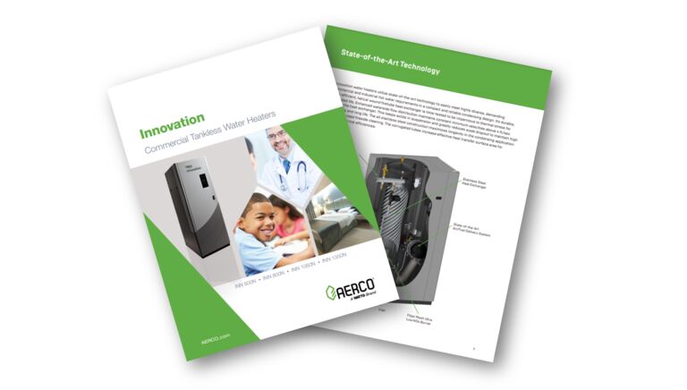 Innovation is the only commercial tankless water heater that provides hot water on demand without the need for any significant storage volume to buffer load change and provide stable hot water temperatures. It features up to 99% efficiency with precise temperature control ±4°F through its dynamic feed-forward sensing and unmatched turndown.