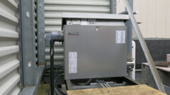 The wall to the old water heating system was partially demolished so the large 500 gallon tank could be removed. In its place, Emerson Swan installed a SmartPlate Double-Wall water heater, complete with boiler-side buffer tank. The Modulex EXT boiler was installed on the roof behind two walls and on a raised platform in anticipation of snow accumulation. To combat the cold weather, they installed a short run of heat trace around the condensate line, which runs back into a neutralizer inside the building. The rooftop installation opened up much more space to work in the mechanical room and the internal redundancy of the Modulex EXT provides backup capacity.